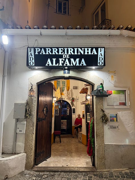 Nestled within the hilly Alfama neighborhood of Lisbon, this restaurante pequeno has hosted Fado shows since 1939. If you’ve never heard of Fado, it’s a style of Portuguese music filled with passion and nostalgia. The best way I can describe it is if an Appalachian folk singer with a banjo and a campfire fell in love with an Opera singer and they had a baby who grew up to play music and sings only in Portuguese, that is the sound of Fado.
